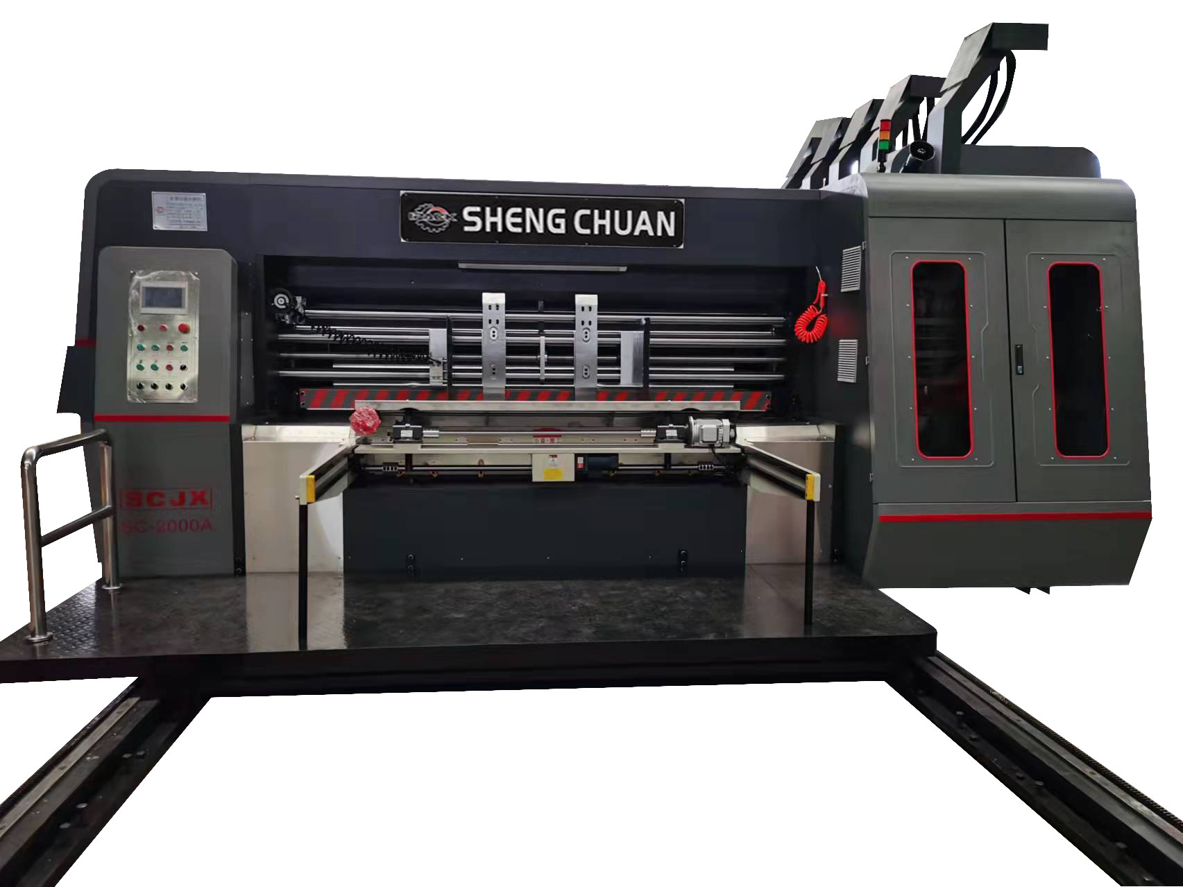 7.Meccanismo di blocco pneumatico. dotato di dispositivo di pulizia della polvere per il lato di stampa del cartone e migliorare la qualità di stampa.