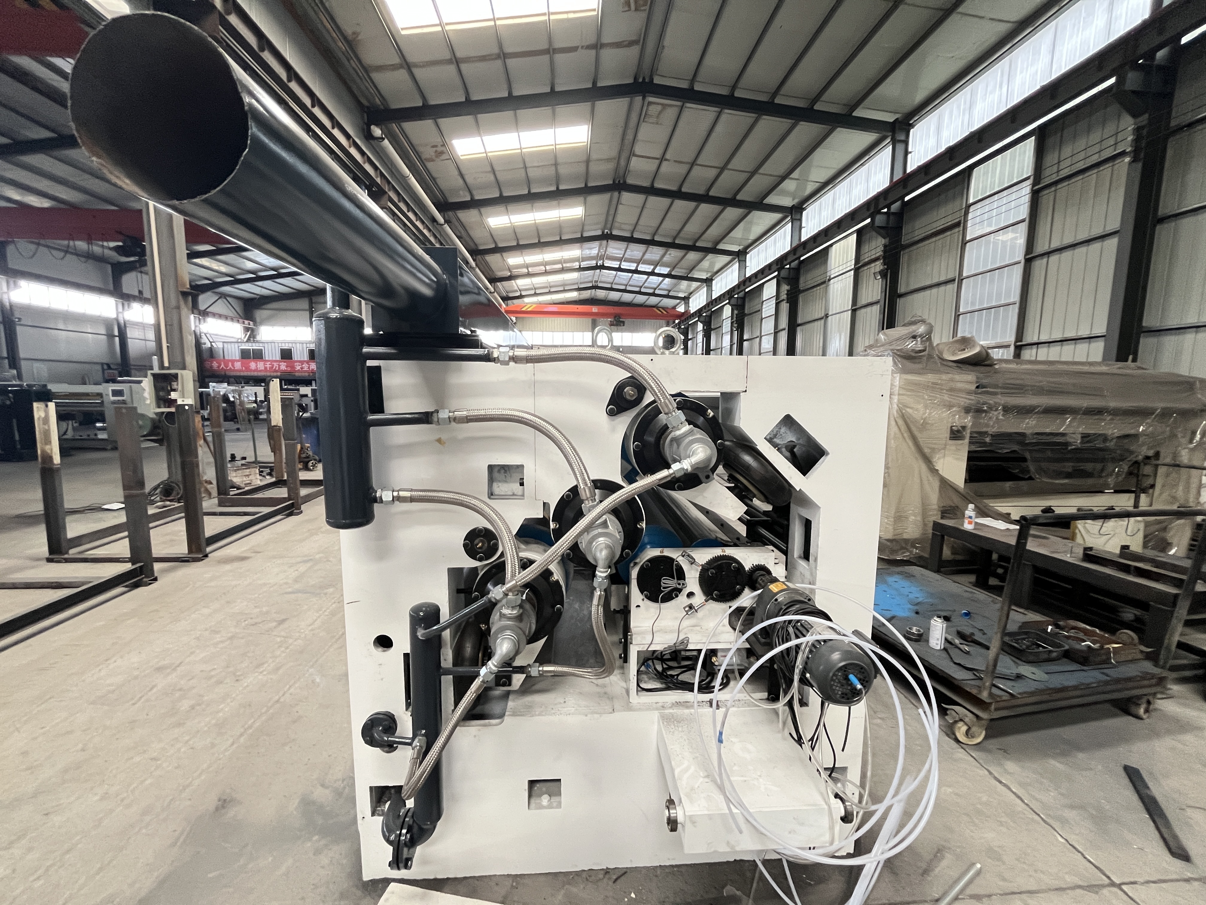 - Pressure roller: ¢370mm, ground and chrome-plated surface, air pressure controlled movement with buffer device